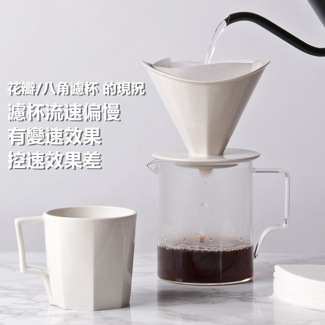 濾杯流速偏慢,越容易做出甜感,口感容易往濃郁的方向走(與V60相比慢,但比舊款梯形濾杯還是快很多)